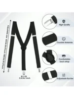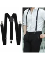 Men’s Black Solid Color 3-clips Elastic Adjustable Suspenders For Daily Suit Trousers With Clips