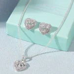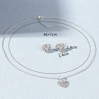 3pcs Rhinestone Heart Pendant Jewelry Set