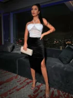 Home Clothing Female Black Split Thigh Velvet Skirt
