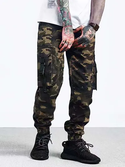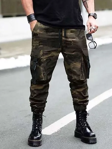 Street Camo Pocket Cargo Drawstring Waist Long Loose Pants