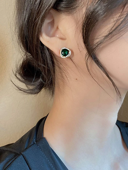 Home All Products Emerald Rhinestone Stud Earrings