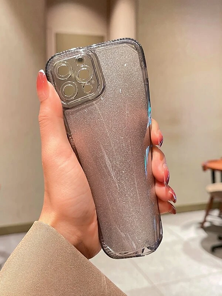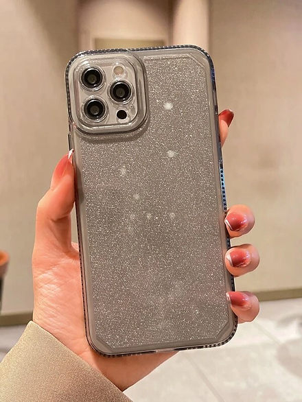 - The transparent case snaps onto your phone, letting its natural color show through while enhancing it with classy silver glitter. Its hard-shell construction protects your phone against scratches and shock-absorbing bumpers safeguard it from drop