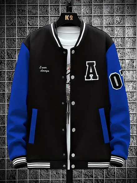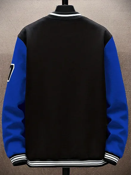 Varsity Colorblock, Letter Baseball Collar Patched, Pocket, Button Front Jacket