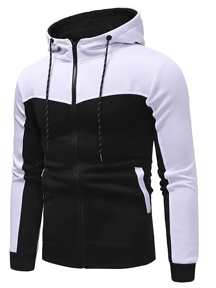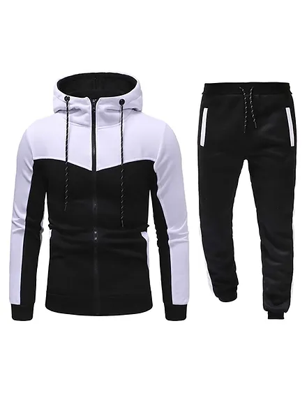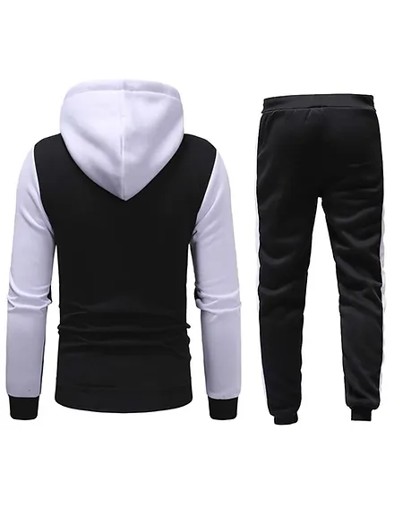 Black and White Colorblock Drawstring, Zipper Front Sweatshirt and Joggers