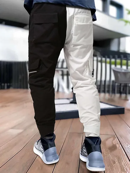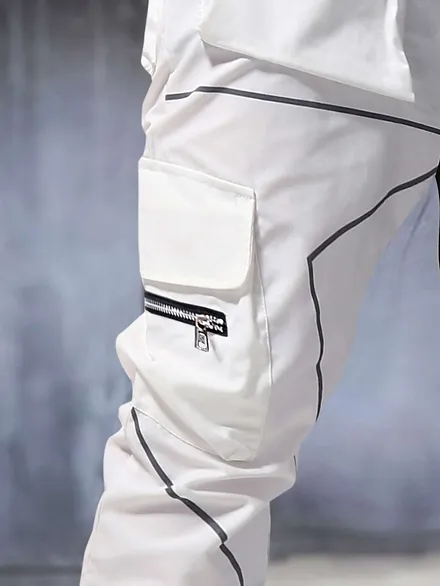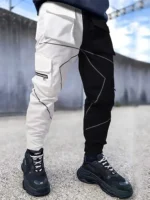 Colorblock Pocket, Zipper, Contrast Binding Cargo Elastic Waist Cropped Pants.