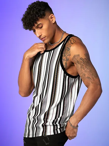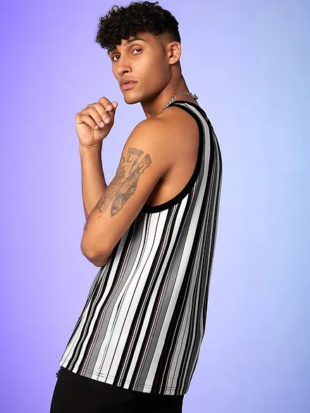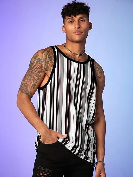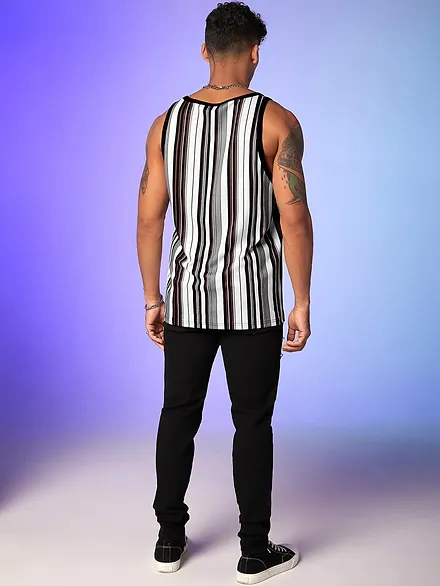 Striped Round Neck Contrast Binding Sleeveless Tank Top