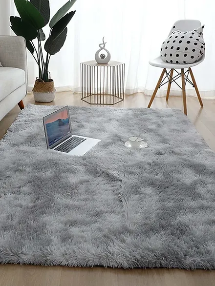 Home All Products Tie Dye Grey Fuzzy Poly Rug 120*160