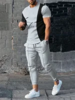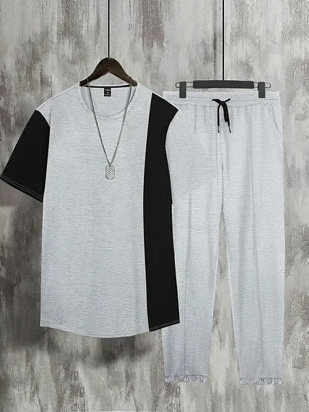 Home Clothing Male Two Tone Shirt and Drawstring Sweatpants