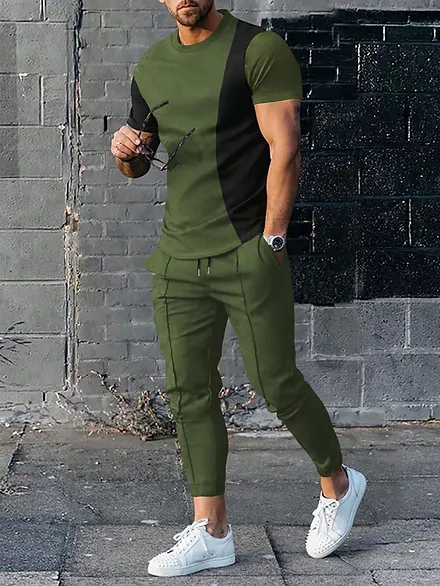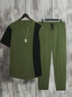 Home Clothing Male Two Tone Shirt and Drawstring Sweatpants