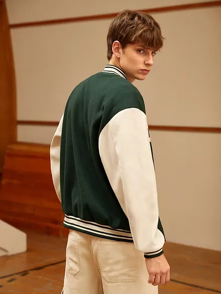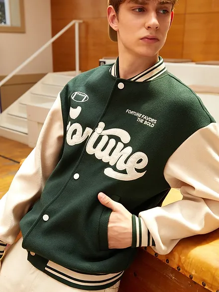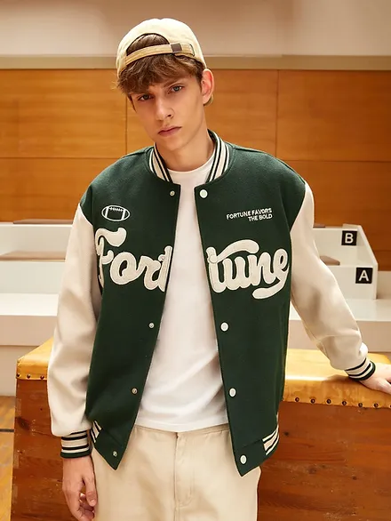 Casual Colorblock, Letter Button Varsity Single Breasted Jacket.